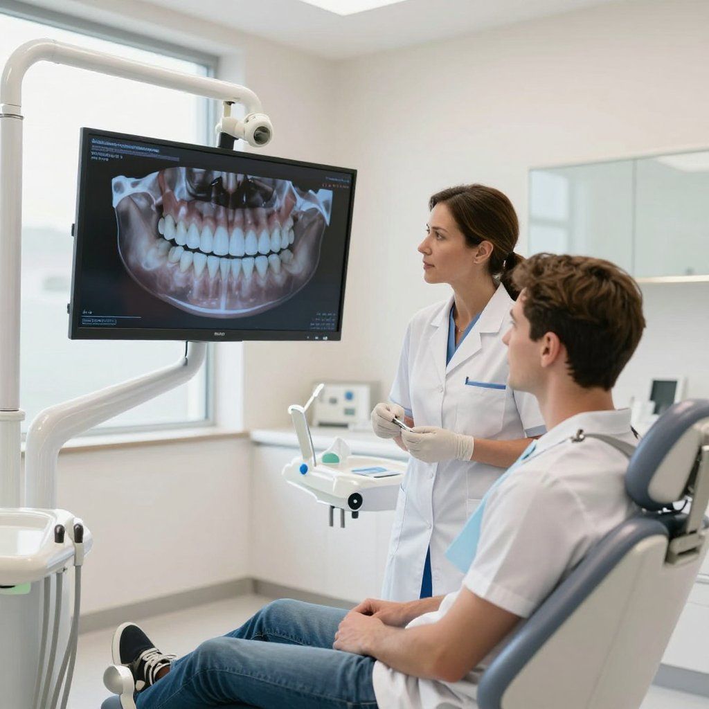 - Assessment of gum health, bite, and existing restorations