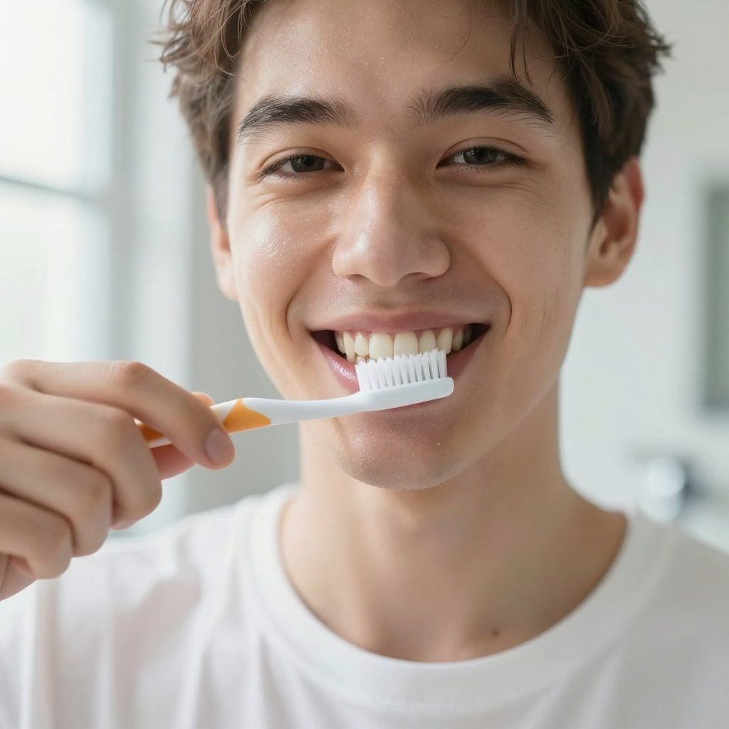 - Brush twice a day with a soft-bristle toothbrush and non‑abrasive toothpaste.